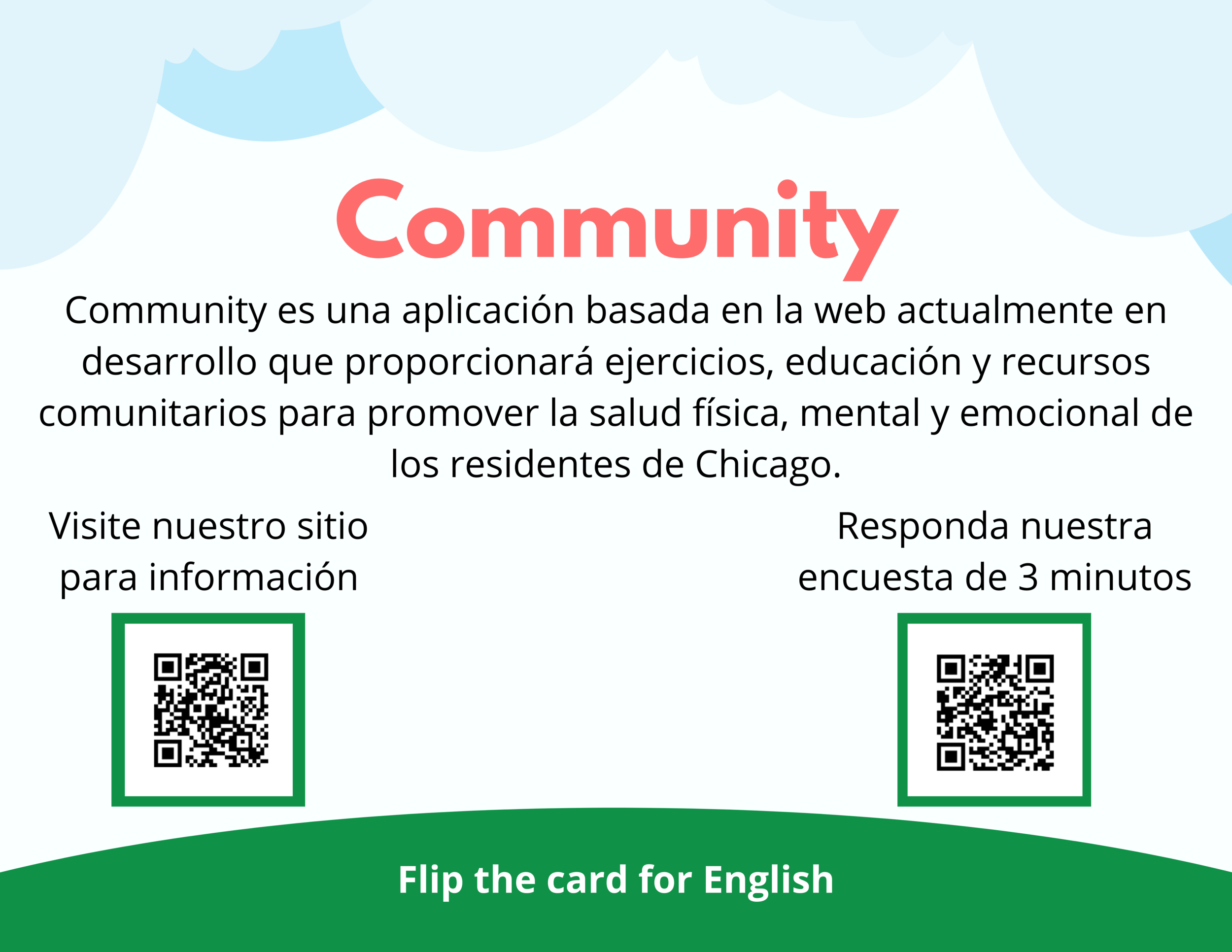 Chicago ward #35 will be the first neighborhood to test Community’s features. These cards were distributed in health clinics and libraries in the area.