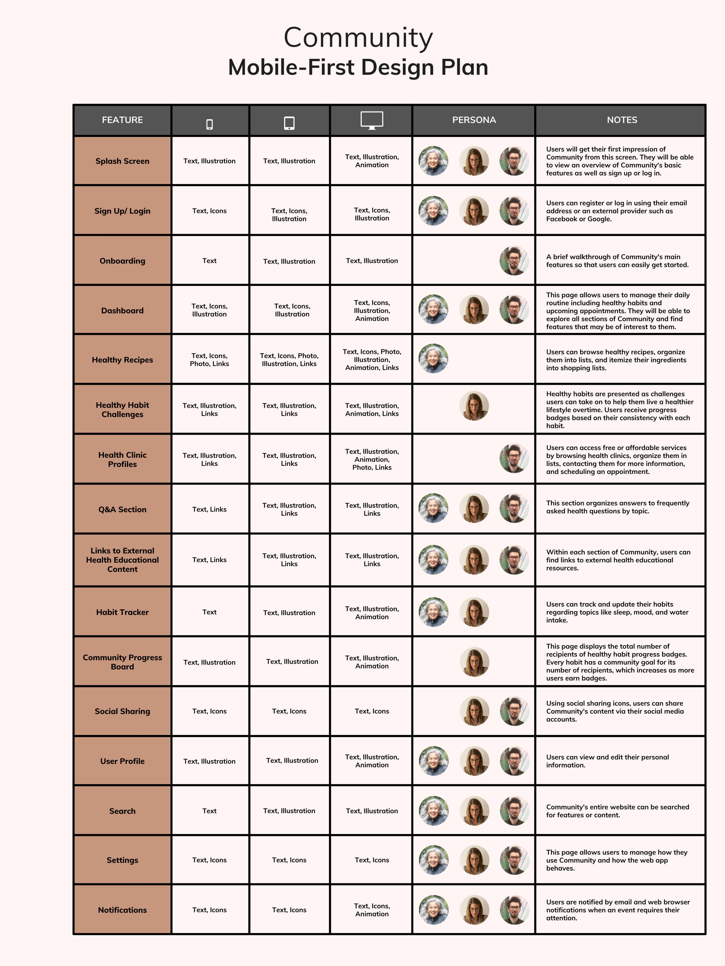 Community’s development process utilizes the Lean UX and Agile methodologies. The Lean UX build-measure-learn cycle provides prompt solutions during the design process. The Agile work flow will keep development flexible to new impactful findings while adhering to deadlines. Wireframes are currently being tested in Community's first round of usability testing. The sections below summarize the main points of this case study so far.