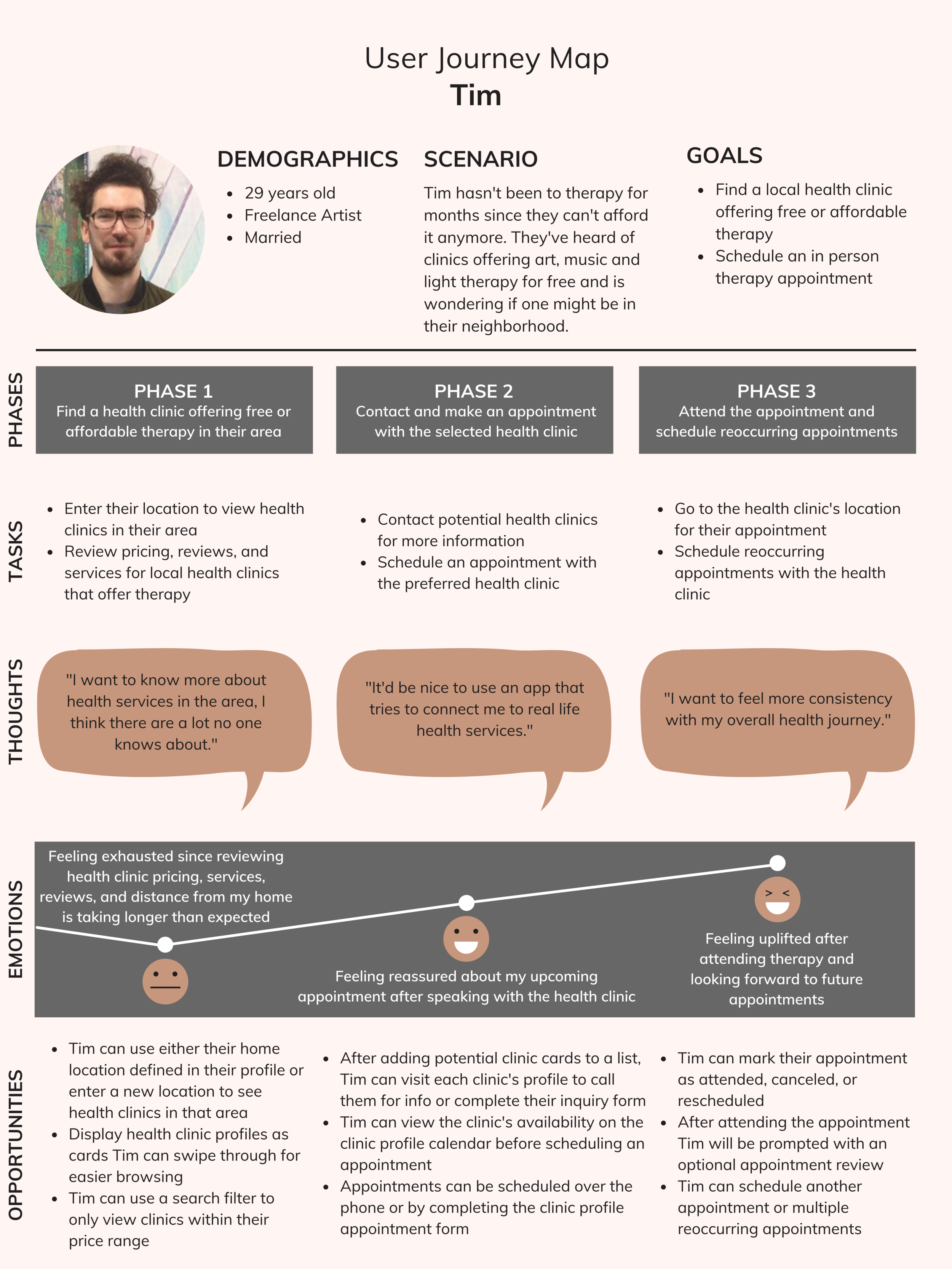 The potential experiences of user personas while completing these tasks was further analyzed in these user journey maps.